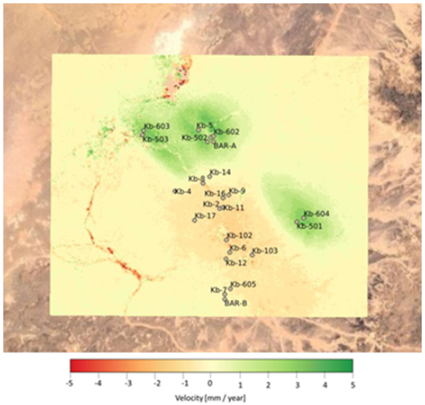 InSAR displacement velocity map over the InSalah CO2 injection site.